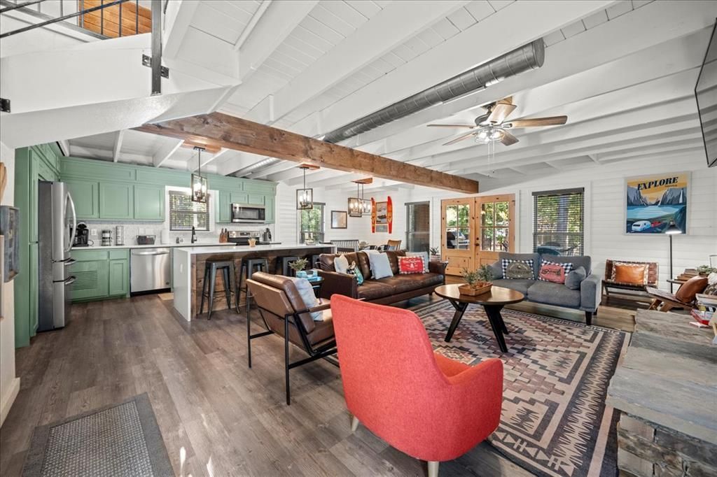 Welcome to Oak & Pine is a short-term rental with a welcoming lake house vibe, perfectly located in the heart of Hochatown, Oklahoma. This 3BR/2BA cabin sleeps 10 and combines charm, comfort, and convenience. Walk to restaurants, wineries, and breweries, or take a short drive to Cedar Creek Golf Course, Broken Bow Lake, Beavers Bend State Park & Marina, hiking, fishing, and all local attractions-including Choctaw Resort Casino.Recently renovated, Oak & Pine blends rustic style with modern upgrades. Enter through mahogany double French doors into the open living, dining, and kitchen area, anchored by a custom stone gas fireplace. The downstairs primary suite includes an en suite bath, with a separate laundry room nearby. Just outside, a flagstone patio features a hot tub, ideal for unwinding after a day of adventure.The kitchen offers an island and dining space, designed for gathering with family and friends. Upstairs, you'll find a guest room, a second full bath, and another bedroom with its own entertainment system and second living area. French doors lead to a private upper deck, strung with lights and tucked among the trees for a cozy treehouse feel. Outdoor spaces are made for entertaining with a covered patio and grill, perfect for cookouts, followed by evenings around the fire pit sharing stories under the stars. Fresh, bright, and inviting throughout, Oak & Pine is a true turnkey rental or personal getaway in one of Southeast Oklahoma's most desirable destinations. Contact the listing agent today for details and to schedule a showing.